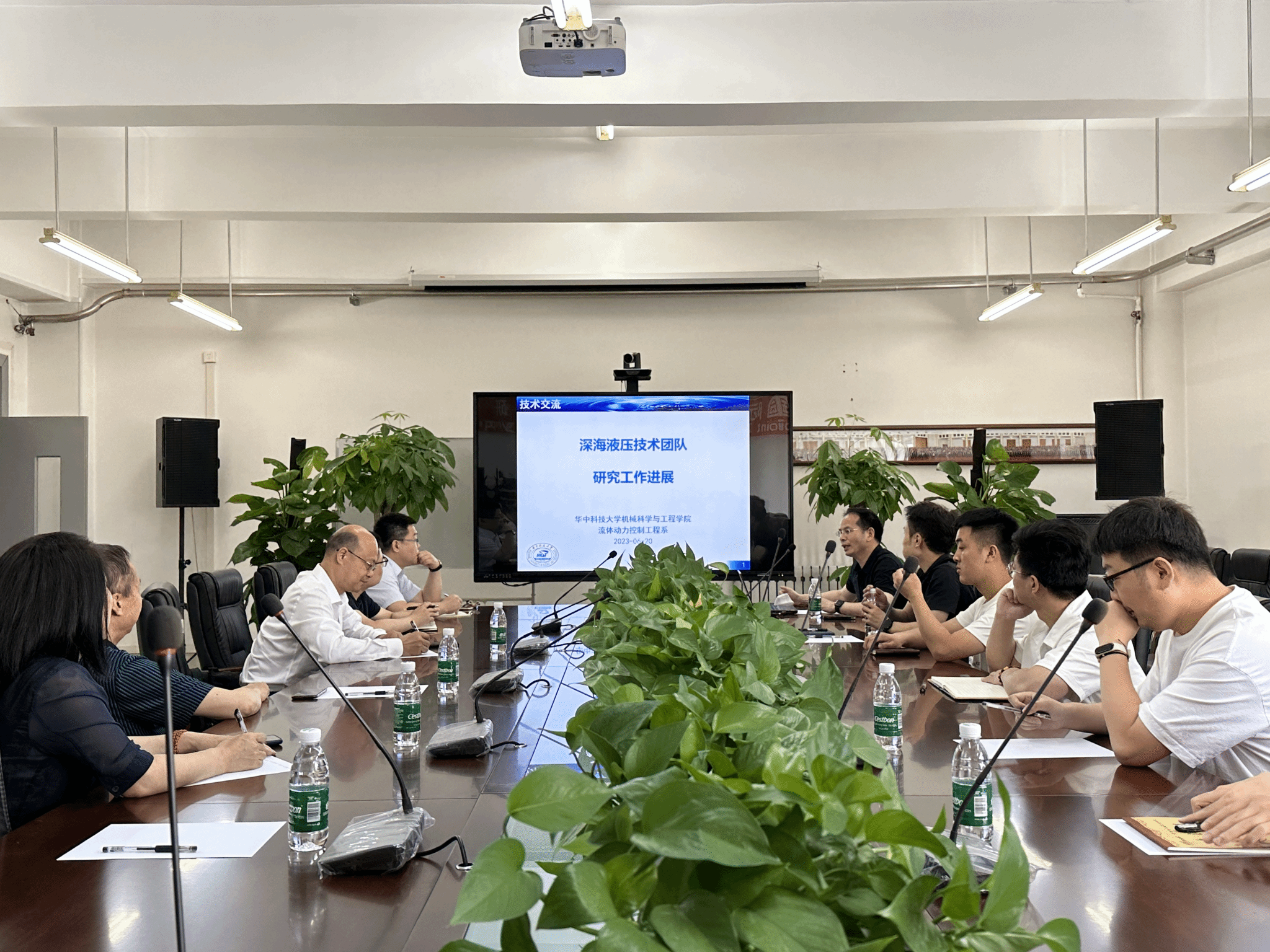 报告中,刘银水教授详细介绍了深海液压技术研究进展。在深海极端环境下,海水液压元件面临超高外压下精密运动副形变卡滞、摩擦副重度腐蚀磨损、超高压海水动密封失效等重大难题。报告从结构原理、材料工艺以及设计方法等方面系统阐述解决上述难题的创新思路与措施,同时介绍相关成果在“奋斗者号”载人潜水器等深海重大工程装备中的应用情况。最后,刘银水教授为大家分享了其科研团队在该领域的最新研究成果,为大家介绍了大深度浮力调节海水泵、全深度浮力调节海水泵等几个重大项目的研发过程及细节,使在座的师生深受启发。报告会后,刘银水教授同参会师生进行了互动交流与深入探讨,并初步确定了进一步深入合作的领域和方向。报告会前,刘银水教授及其团队成员在学院党委书记李颂华教授的陪同下,参观了学院实验室及相关成果展示。