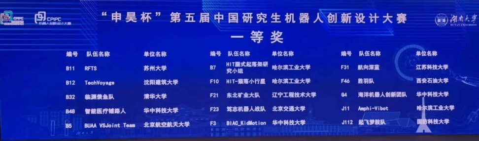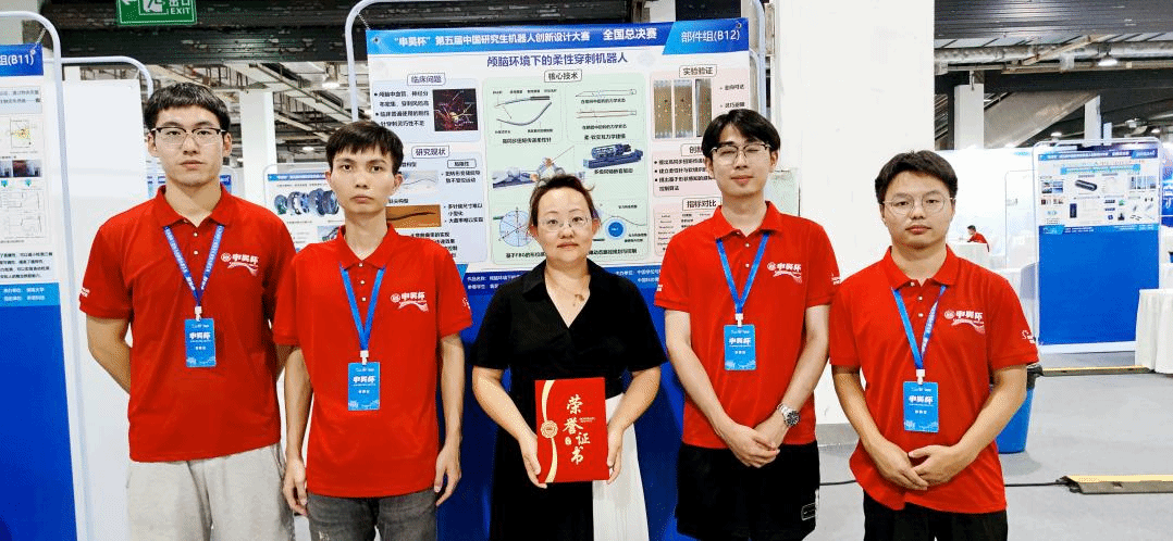 近日,由教育部学位管理与研究生教育司指导,中国学位与研究生教育学会、中国科协青少年科技中心主办,湖南大学承办的“申昊杯”第五届中国研究生机器人创新设计大赛在长沙圆满闭幕。大赛共计近240所高校及科研院所的1177支队伍参加,经初赛评审,最终有来自96所高校和科研院所的288支队伍进入决赛。决赛经过现场评审、分组答辩和冠军争夺赛三个环节的激烈角逐后,最终我校买足球的app软件推荐教师李杰带队指导的“TechVoyage”研究生团队——袁吴越(2021级)、邓伟权(2022级)、张恩昊(2022级)、沈记(2022级)携参赛作品《颅脑环境下的柔性穿刺机器人》斩获大赛一等奖,这也是我院学生首次获得该项赛事一等奖。指导教师李杰获评大赛“优秀指导教师”。