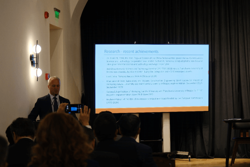 10月30日,由中国-中东欧国家高校联合会和特莱西瓦尼亚大学共同举办的第二届中国-罗马尼亚高校校长论坛在布拉索夫召开。来自中国和罗马尼亚的各高校校长代表团共计40余人参加。特来西瓦尼亚大学校长阿布鲁丹在介绍国际交流合作经验与成果时,高度赞扬了与我校的合作成果,并将包括第三届中-罗科技年会、国际合作联合实验室、学科创新引智基地(“111”基地)等成果作为重点介绍内容进行了分享与展示。参加会议的各高校代表对我校与罗方开展的国家合作交流成果表示出了高度的兴趣,会后也纷纷与我代表团人员交流经验。